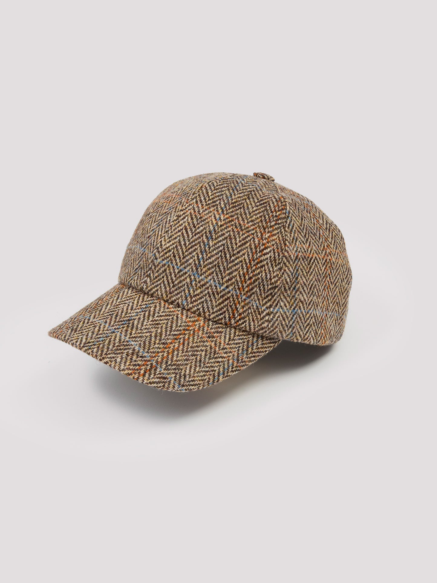 A contemporary take on the classic baseball cap, crafted in robust tweed. The herringbone weave in beige and brown is uplifted with subtle overlays of light blue and orange, adding modern nuance to a timeless shape. Lined in cotton for comfort, with an adjustable strap to ensure a perfect fit. A discreet lost-and-found label completes the thoughtful detailing.