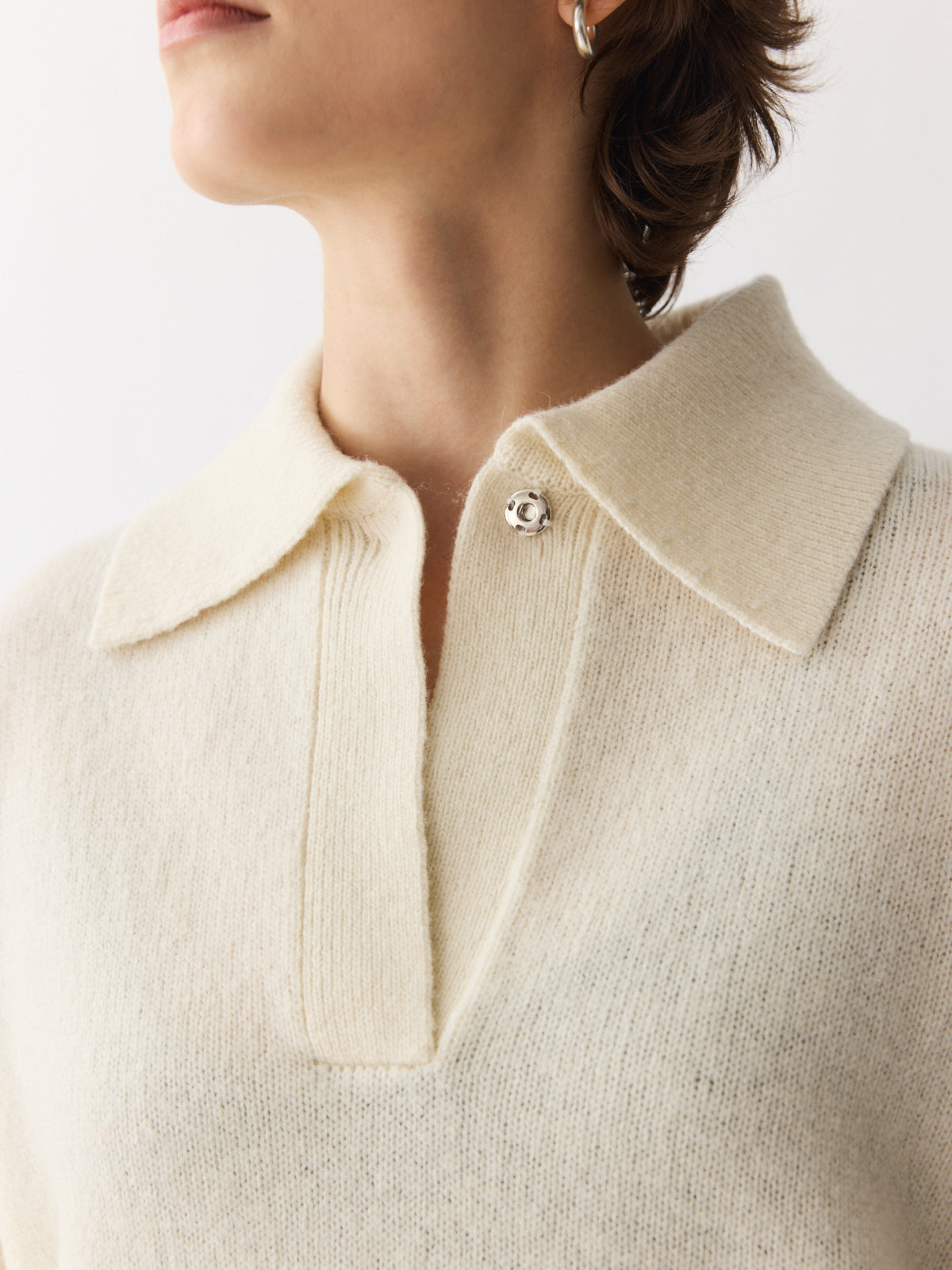 Wool Polo Sweater 25h Ecru