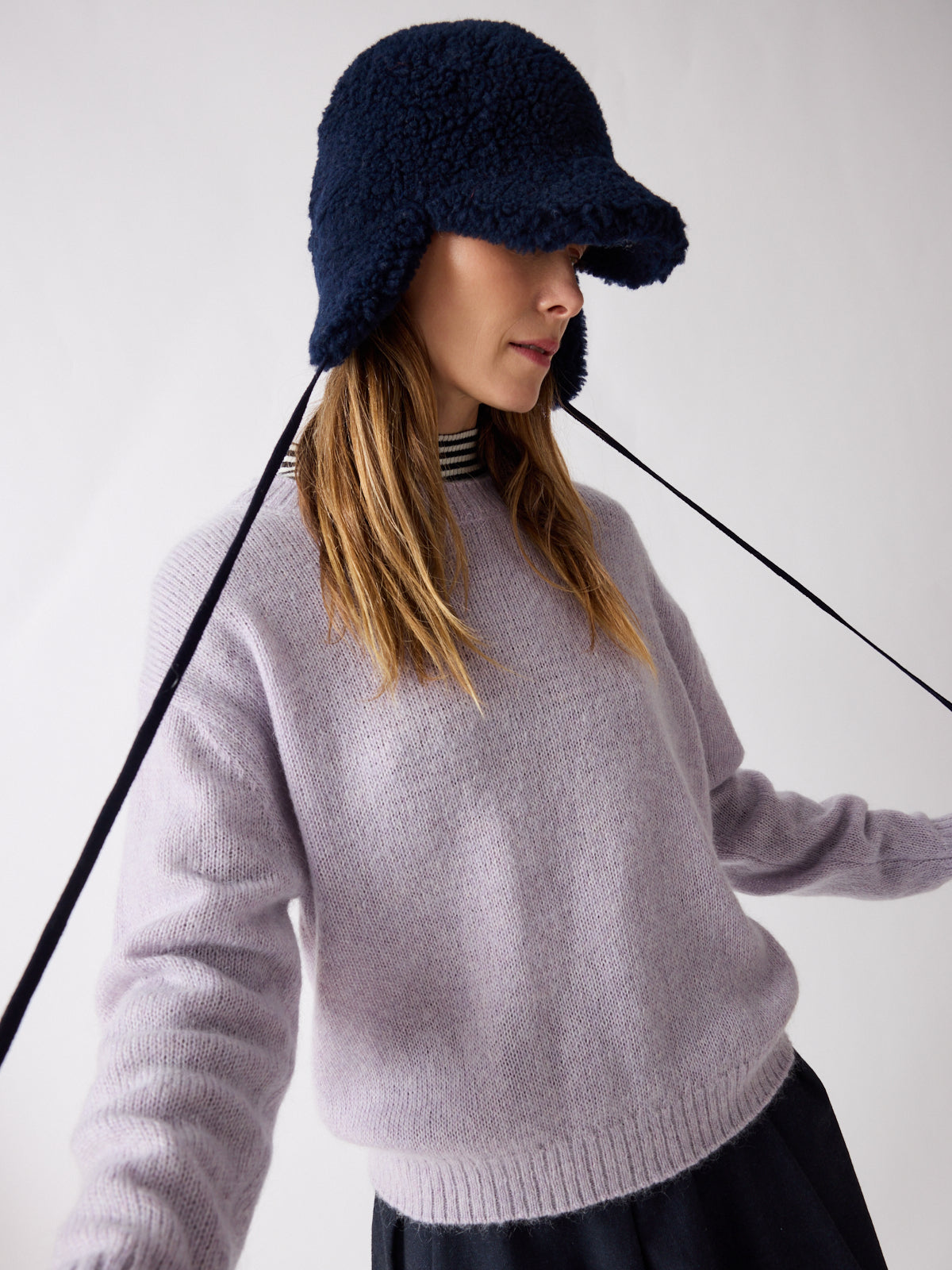 Pompom hat stripes cumin/oatmeal - Jo Gordon