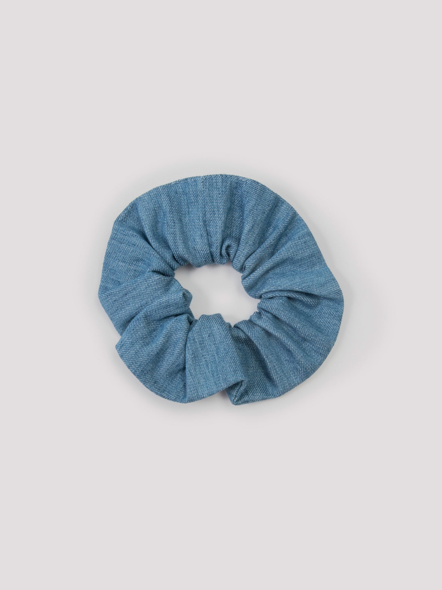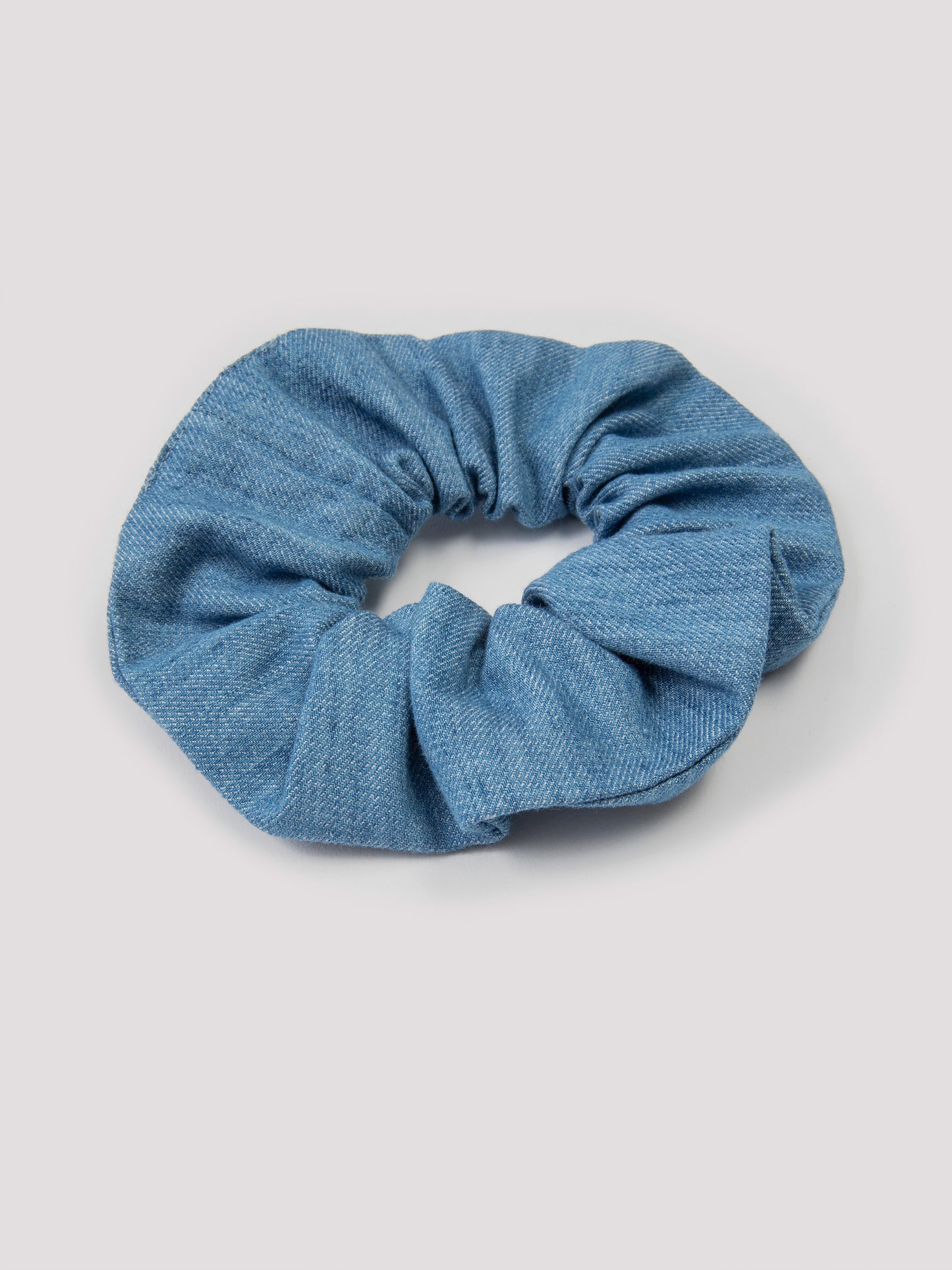 A modern, everyday accessory designed to elevate long hair. This scrunchie in soft, airy light blue denim offers a considered alternative to your usual hair tie. Crafted from 100% cotton with a flannel-like feel, it completes a coordinated look when paired with matching pieces from the collection (necktie Colly, Palu trousers and Raki shirt).