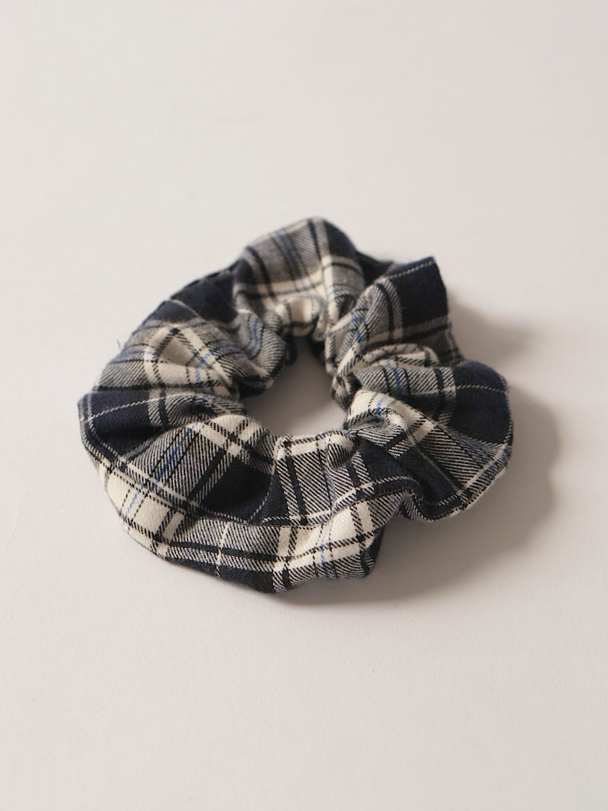 A fun touch for long hair. This scrunchie in fresh navy check upgrades the everyday ponytail with soft flannel texture and a refined urban palette. Style with the matching Leathy shirt for a thoughtful, coordinated look that feels casual but composed.