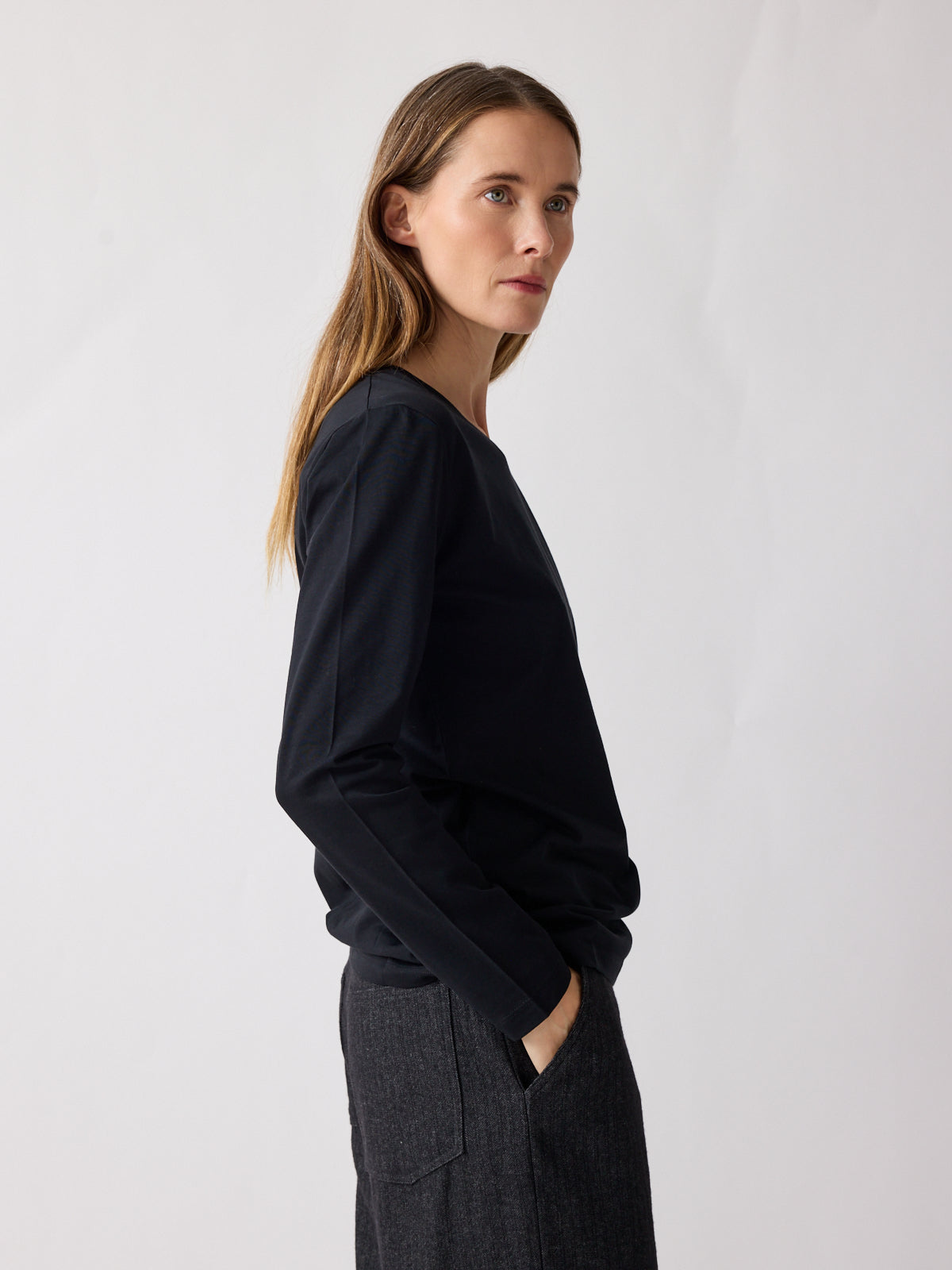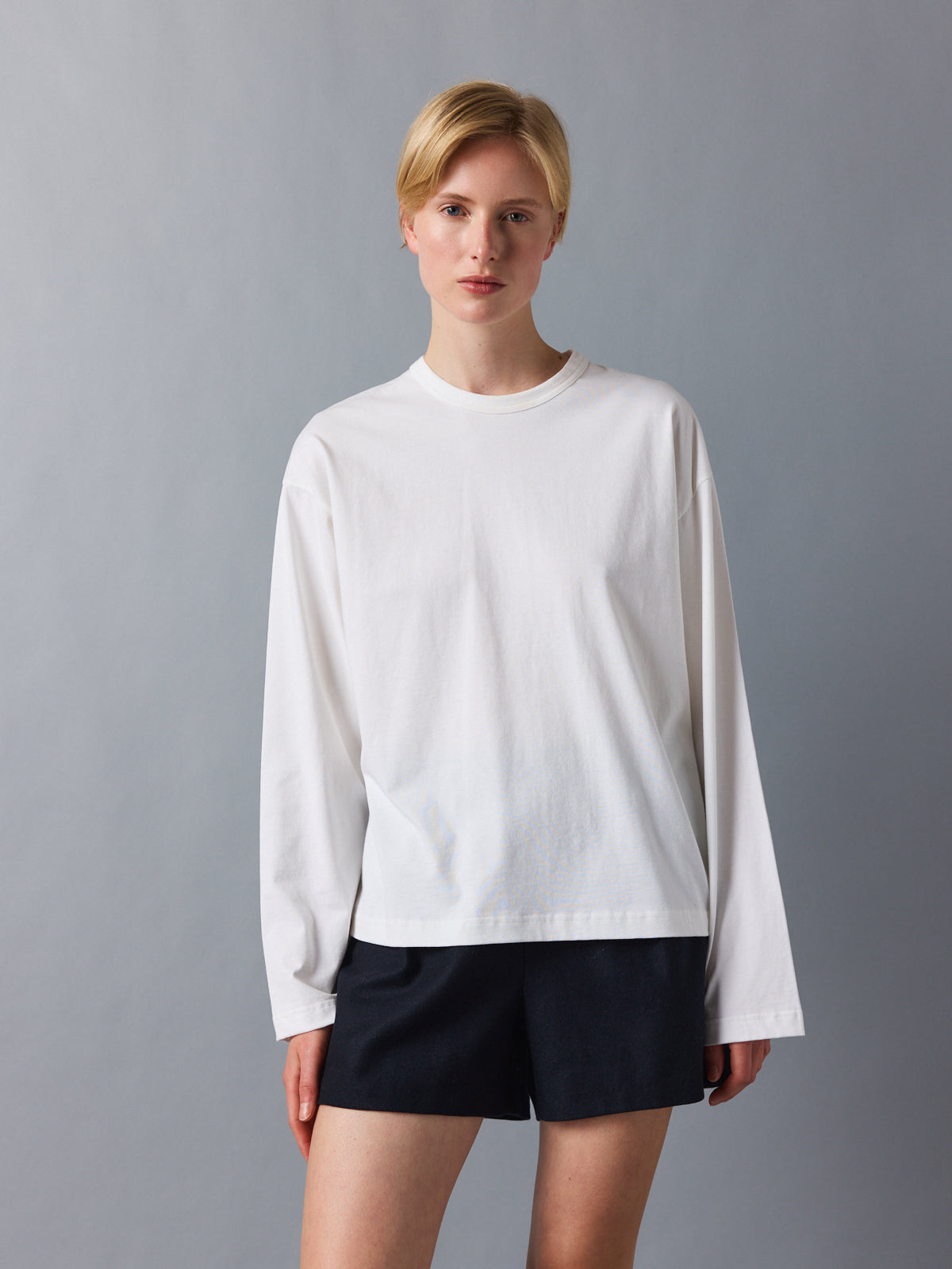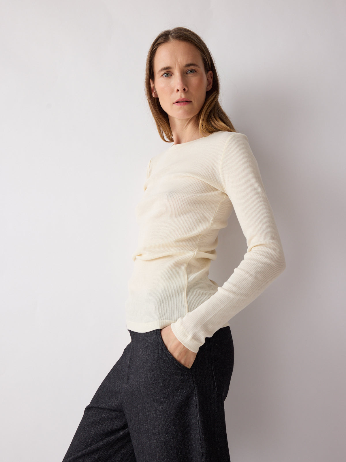 For Autumn–Winter 2025, we return to the Cashcot group: a small collection of long-sleeved T-shirts made from 85% cotton and 15% cashmere. They offer the comfort of cotton with the gentle luxury of cashmere. Ideal for layering, but they look just as refined on their own.